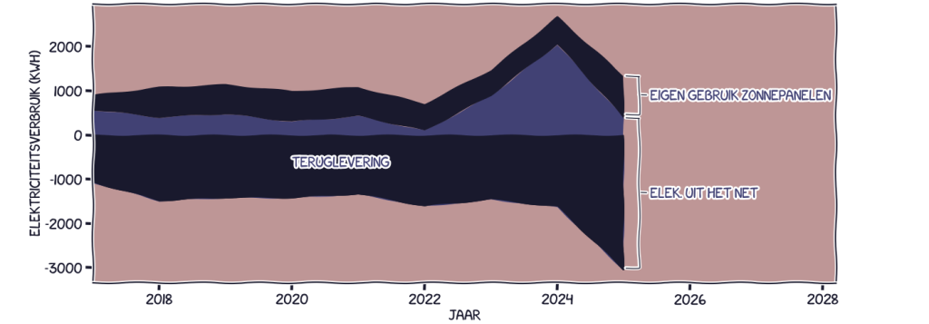 - We vergeten de teruggeleverde stroom (niet salderen)
